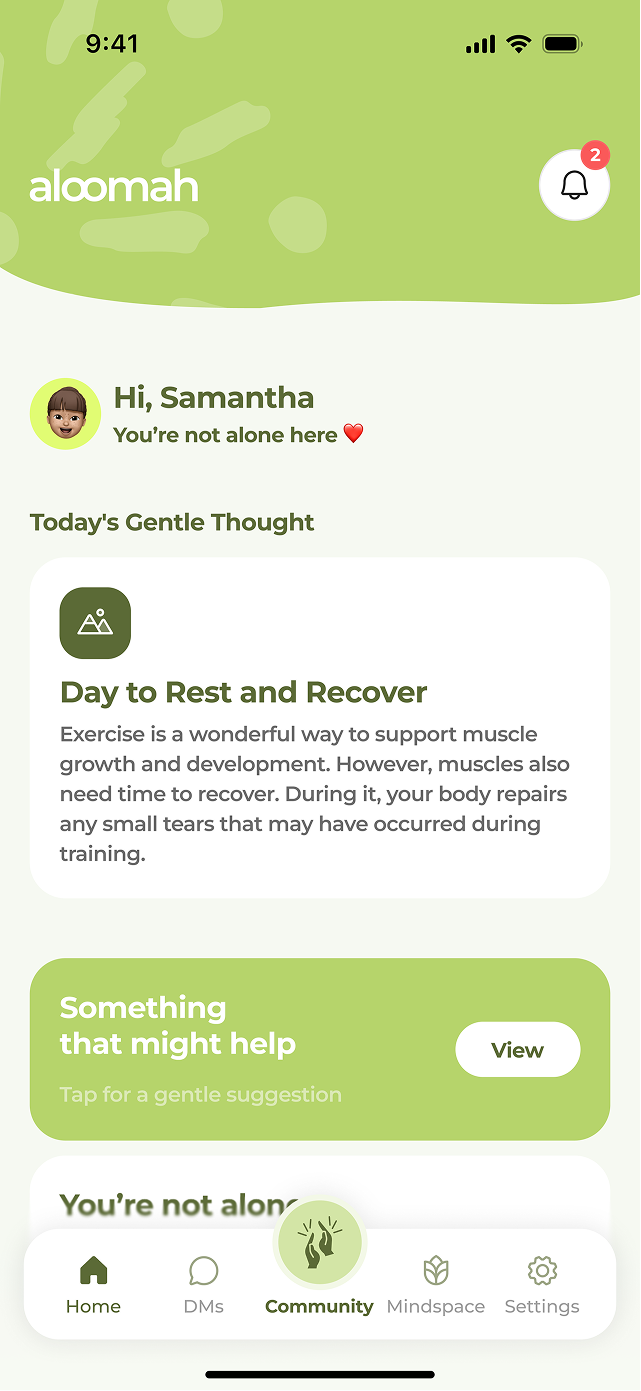 Unable to find something that felt private, human, and appropriate, we built the platform we wish had existed. Calm, non-clinical, and centered on emotional support & community.